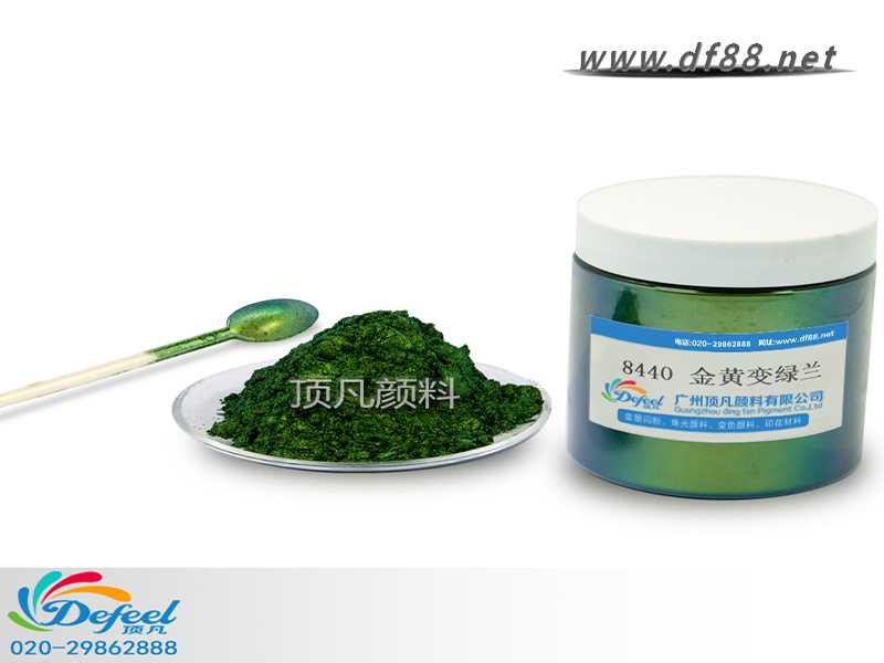 88440 金黃變綠藍(lán)變色龍粉可應(yīng)用于涂料、油墨、塑料各產(chǎn)業(yè),產(chǎn)品之設(shè)計(jì)大多以室內(nèi)(無紫外光之環(huán)境)與室外(有紫外光之環(huán)境)有顏色變化為訴求。